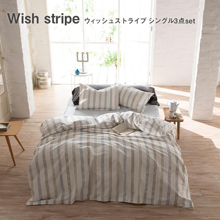 店内商品ポイント10倍 シングルベッド用 シーツ & カバー 3点 セット 寝具 ピローケース 枕カバー 綿 コットン ストライプ ベーシック シンプル 【送料無料】